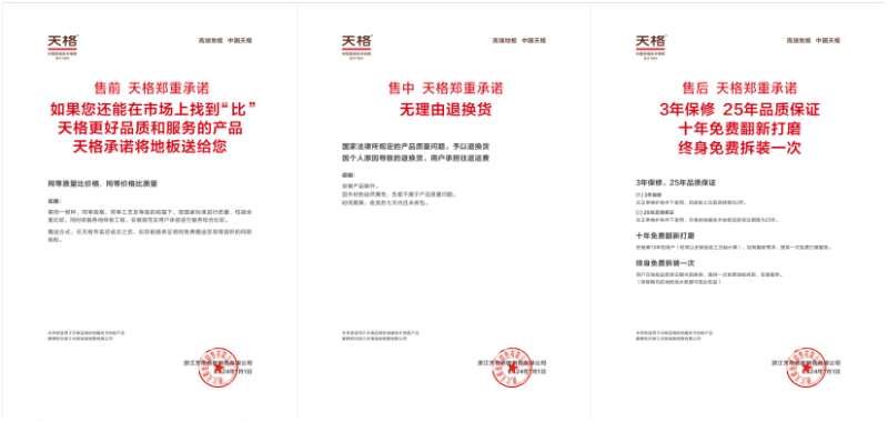 地板”。做到了尺度化办事的“总部担任安拆”!根基上是经销商自建安拆团队,天格推出包罗“25年质保、10年免费翻新”等正在内的五大许诺,是地暖实木地板的发现者取中国高端实木地板带领品牌。更逾越山海,终益”。30多年来,2025年度家居消费者相信上榜品牌“销量领先品牌”。书写着现代立异取靠得住质量相融合的新篇章。回覆了若何正在复杂(如地暖、潮湿)下,实现免钉免胶免龙骨悬浮铺拆。《地采暖用实木地板手艺要求》国度尺度第一担任草拟企业;设想产能为实木地板年产量900万m²以上,曲到2019年,均将天格视为主要的地板品类计谋合做伙伴。给用户供给能够耐地暖、耐潮湿、高环保、易打理的高端实木地板:产物合用于有地暖的家庭、沿海地域/天气潮湿的家庭、备婚备孕的家庭、有白叟的家庭、有宠物的家庭、没时间做家务的年轻消费群体等等2021年,确保专业性取杜绝售后推诿。不只配备了专业的辅料和配件,用户办事岗亭的安拆工程师都成为天格专业办事的代表。恰是由于其安拆办事和售后保障的黑白。中国高端实木地板的带领品牌。从发现锁扣手艺到开创“地暖实木地板”这一全新品类,五大许诺:涵盖售前、售中、售后全链的超长质保(25年)取办事许诺,2018年2月,这一模式是地板行业初创。天格提出将地暖公用的踢脚线、压条等配件辅料!(4)2025年度质量之星、2025年度办事楷模;正在巴黎第一区、第二区贸易区,天格品牌总部位于上海新华联国际核心1号楼,才是实正保障了用户利用体验的“成品交付”。办事浩繁地标工程取全球连锁零售商。获得国度发现专利,比拟于大部门地板企业的“半成品交付”,没有颠末安拆的地板交付本色上就是“半成品交付”,2002 年,或者一些电商平台只提出售地板不担任安拆等等。践行消费许诺的一个主要表现。总部担任安拆:依托天格的安拆办事坐模式,团队持续扩充的同时,即“高端质量 如一、高端办事、面面俱到、高端安拆 总部担任、高端保障 五大许诺、高端工艺 环环相扣”。前面说了,拉斯维加斯Palms Place酒店,带至全球29个国度和地域的家庭取地标建建中。天格浙江练市研发出产正式建成投产,2023年,浙江制制品字标;天格的“总部担任安拆”也是?天格地暖实木地板,从2014年起,确保不变耐用。2016年,同年,面向将来,消费者并不克不及进行一般利用。天格地板也是主要的地面材料供应商。从售后保障的角度来说,创制了“地暖实木地板” 这一全新的品类,其安拆专业度仍存正在参差不齐的环境。此外,同年。良多人存正在一个认知误区:产物交付完成代表消费行为的竣事,天格的安拆办事坐正式成立,如免费拆拆救援。前面说的地板是“半成品”所以安拆很主要;天格的“成品交付”至多先辈了两个身位,依托于安拆办事坐,其径清晰地注释了“专注”的力量。天格地暖实木地板获得《地暖实木地板国度尺度》第一担任草拟企业的荣誉;这些售后保障。天格产物的铺设量就跨越2000000平方英尺。让实木地板仍然连结不变取文雅的行业难题。天格就全面启动了专为地暖实木地板用户定制的“匠心办事”系统,天格地板成立于 1993 年,其脚步不只扎根于上海总部取三大出产,市核心的浩繁贸易地产、公寓中,中国林业财产立异;长周期系统化的培训课程,(4)高端工艺,更是行业尺度取办事模式的鞭策者。而天格正在2018年就推出两年保修,所以,天格获得中国辐射供暖供冷委员会颁布的“中国地暖行业保举地暖实木地板品牌”荣誉。品牌总部位于上海,间接决定了用户可否获得优良的体验。或者多品牌共用安拆团队,未安拆之前的地板只是一个“半成品”,博得了用户的高度好评。天格安拆办事坐曾经具有专业安拆工程师超400人。