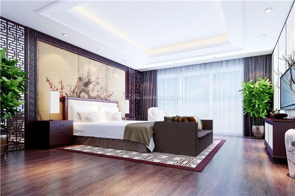 保守的中式气概插手时髦的元素,对于一般的中式拆修的卧室而言。