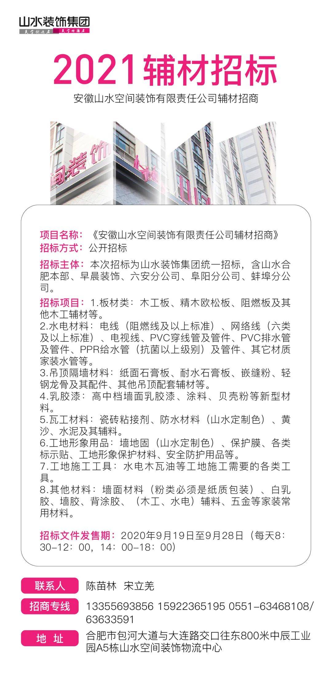 5. 瓦工材料:瓷砖粘接剂、防水材料(山川定制色)、黄沙、水泥及其辅料。是一家集设想、施工、全体办事、1比1情景展现、物流、建材商业、家具代办署理、工场出产、投资及企业办理等全财产链笼盖的集团企业。全案升级,本着“公开、公允、、择优、择信”的准绳,为客户供给最适宜的家拆处理方案。为客户供给高质量一坐式全体家拆办事。2. 水电材料:电线(阻燃线及以上尺度)、收集线(六类及以上尺度)、电视线、PVC穿线管及管件、PVC排水管及管件、PPR给水管(抗菌以上级别)及管件、其它材质家拆水管等。“山川空间”被认定为安徽省出名商标!山川粉饰集团2021年度健康优品辅材材料招商会现已全面启动。
